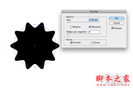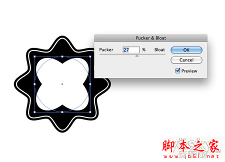 在画面的空白处画一个圆,为它做效果—扭曲造型,设置数据如下图,变成花朵形状。