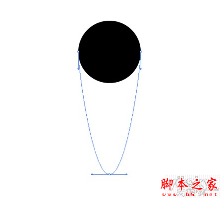 在画面空白处画一个圆圈,用直接选择工将圆形的最低点往下拖动到。按住Alt键,并用钢笔工具单击调整贝赛尔曲线手柄,形成一个长长的水滴状。