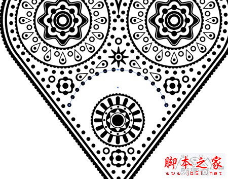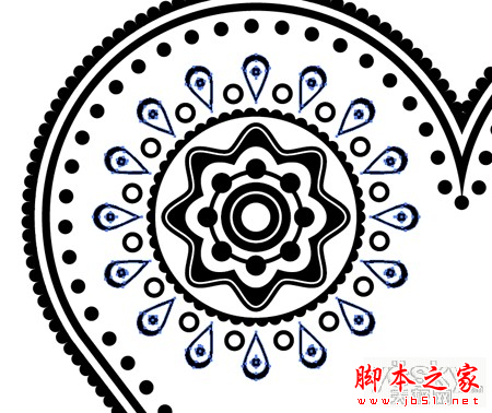 在圆形的周围放置刚才做好的水滴形状图案,然后重复旋转变换,这样就形成了类似孔雀尾翼的复杂图案。