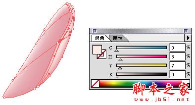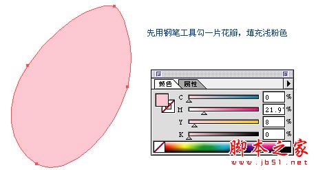 5.再做另一片花瓣,方法基本一样,也先用钢笔勾形。用渐层工具调整,如图。