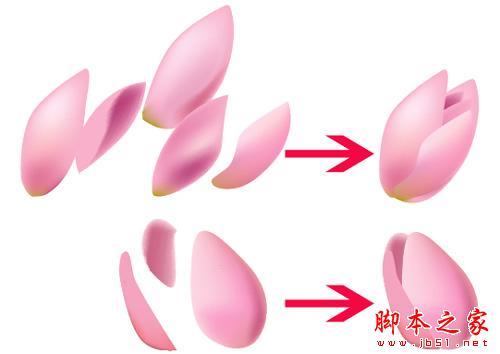 7.用同样的方法制作其他不同形态的花瓣。