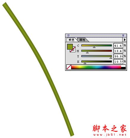9.复制茎的路径,按ctrl+F粘贴在前,然后调整节点,把它调的细一些, 然后填上浅一些的绿色.