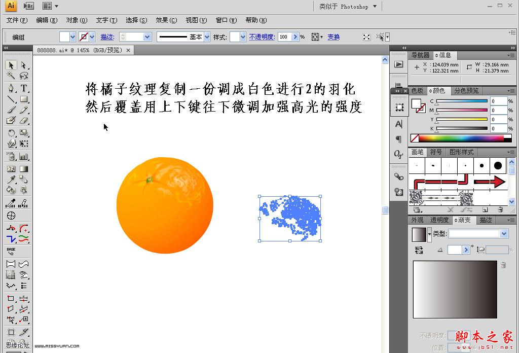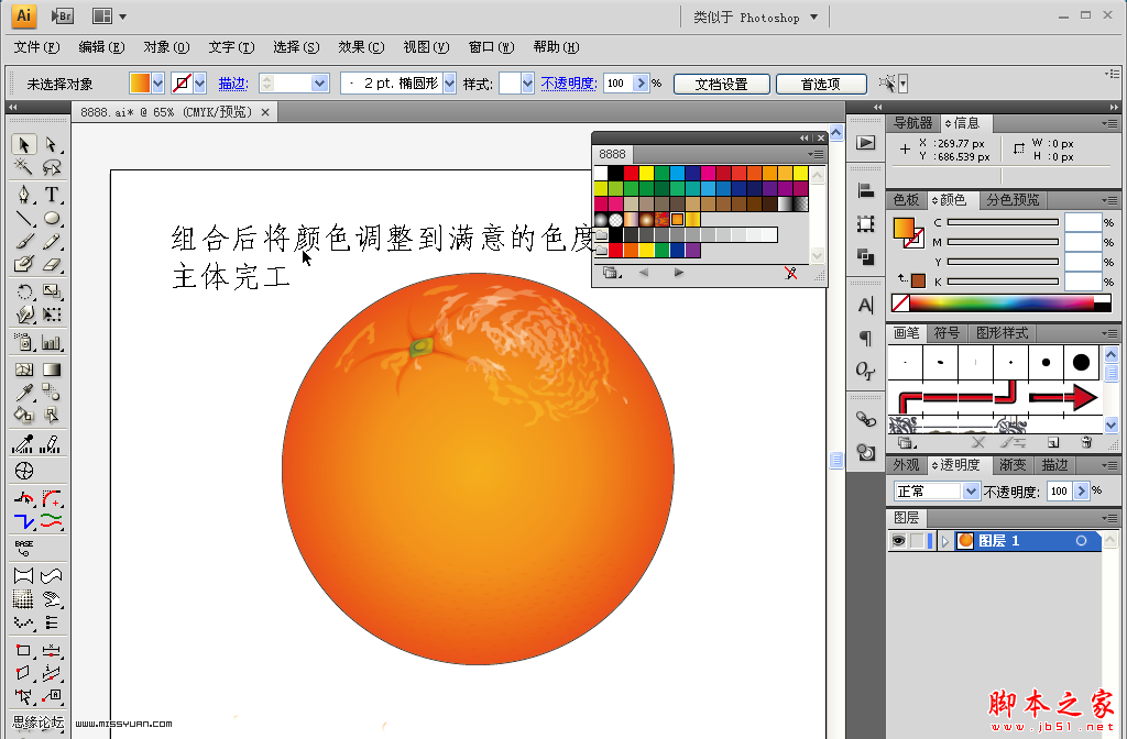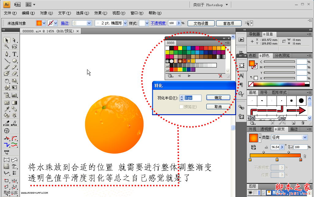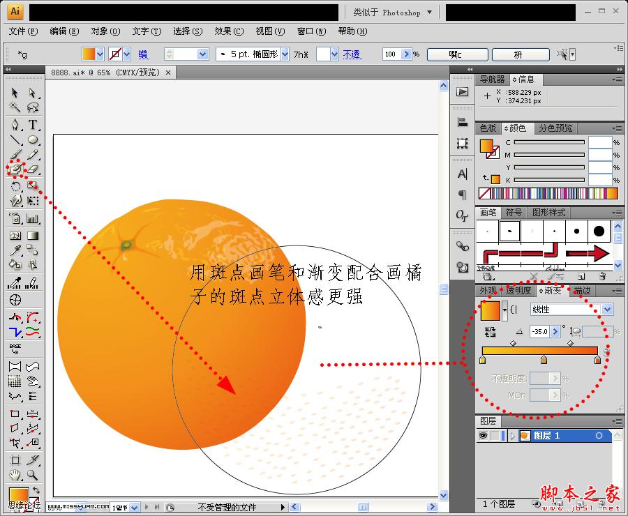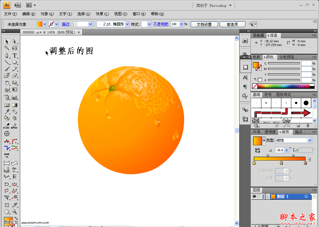 教程将向的朋友们介绍如何快速的绘制一个漂亮逼真桔子的方法,教程的学习难度不大,适合新手朋友学习,其中渐变的调整是整个作品的主轴和关键,感兴趣的朋友可以学习制作一下!