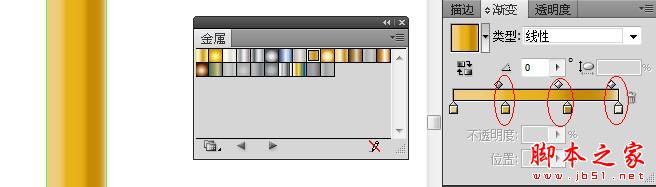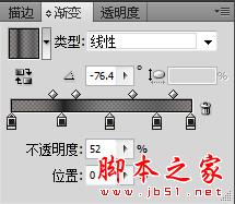 为这个图形填充棕灰色渐变。我这里使用的是(R35 G24 B21)→(R33 G32 B33)→(R34 G29 B29)→(R32 G33 B32)→(R35 G24 B21),第一三五个颜色的透明度均为52%。渐变角度为-76.45°。