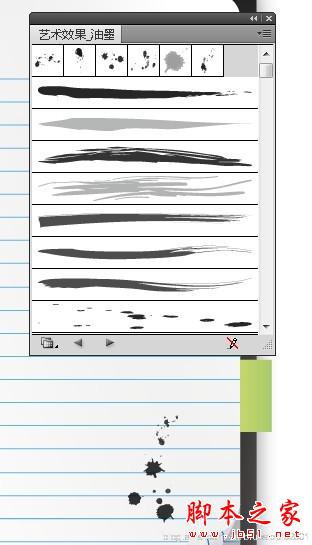 使用画笔工具,在画笔调板中,选择"艺术效果_油墨"合适的画笔绘制几个散点。