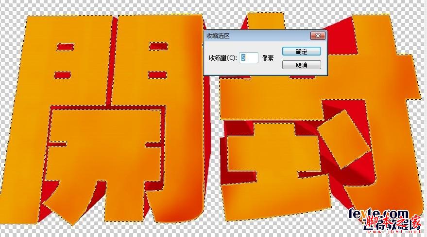 选择/修改/收缩,3-5个像素即可。搜索过后,那个"开"字的上面小框框也收缩了,所以用减法减掉选区,如第四个图。