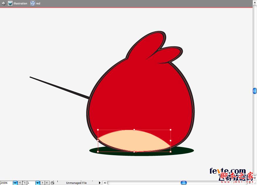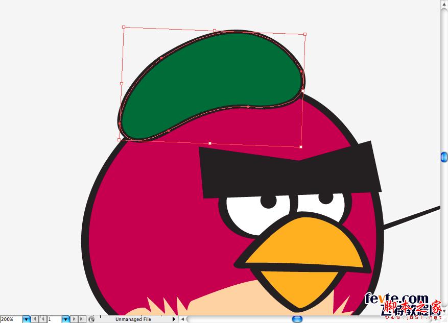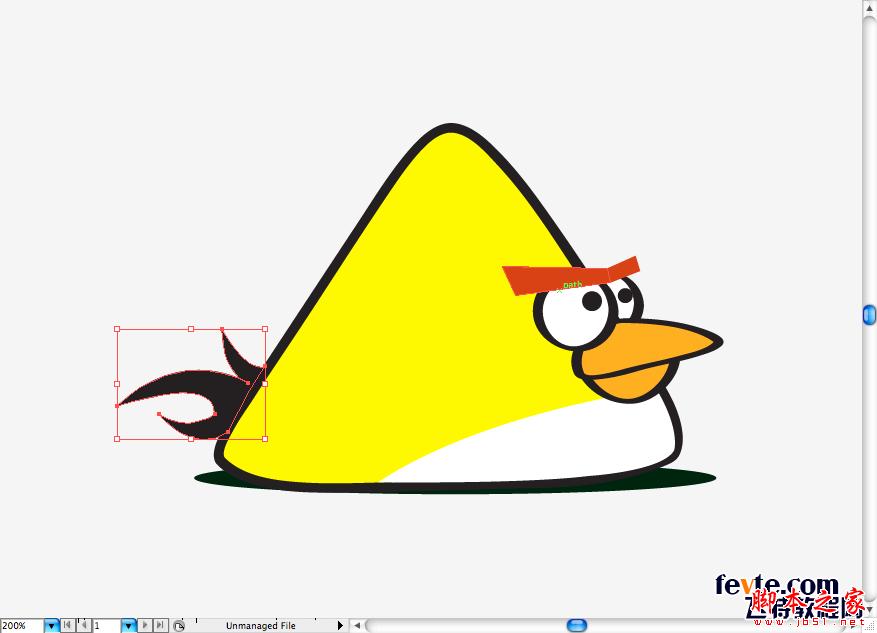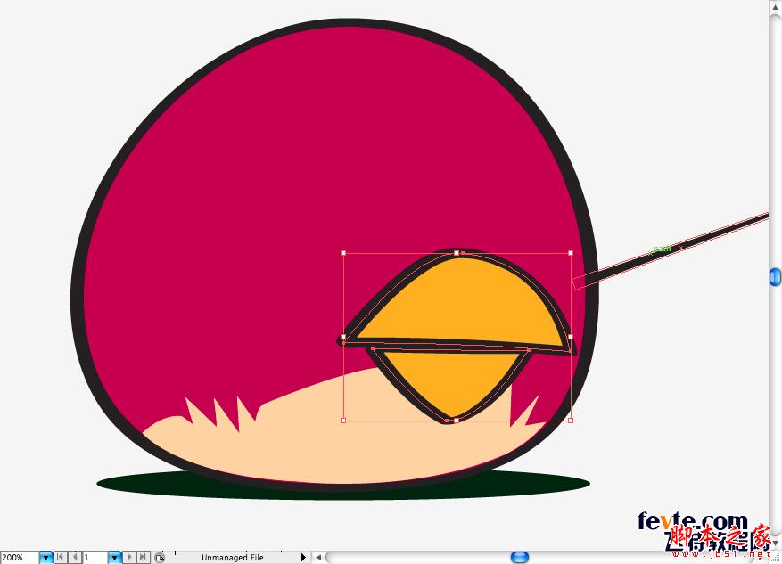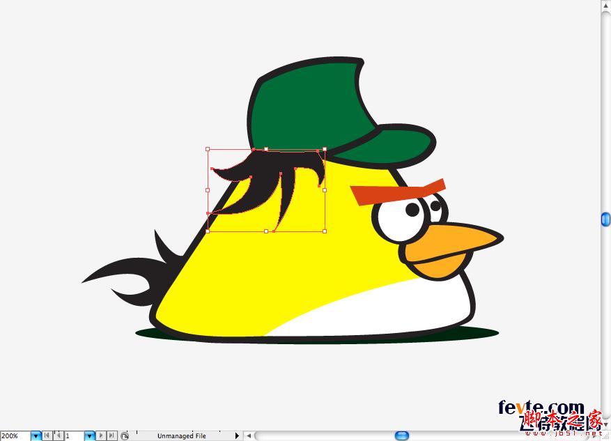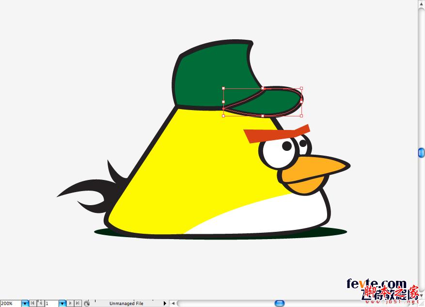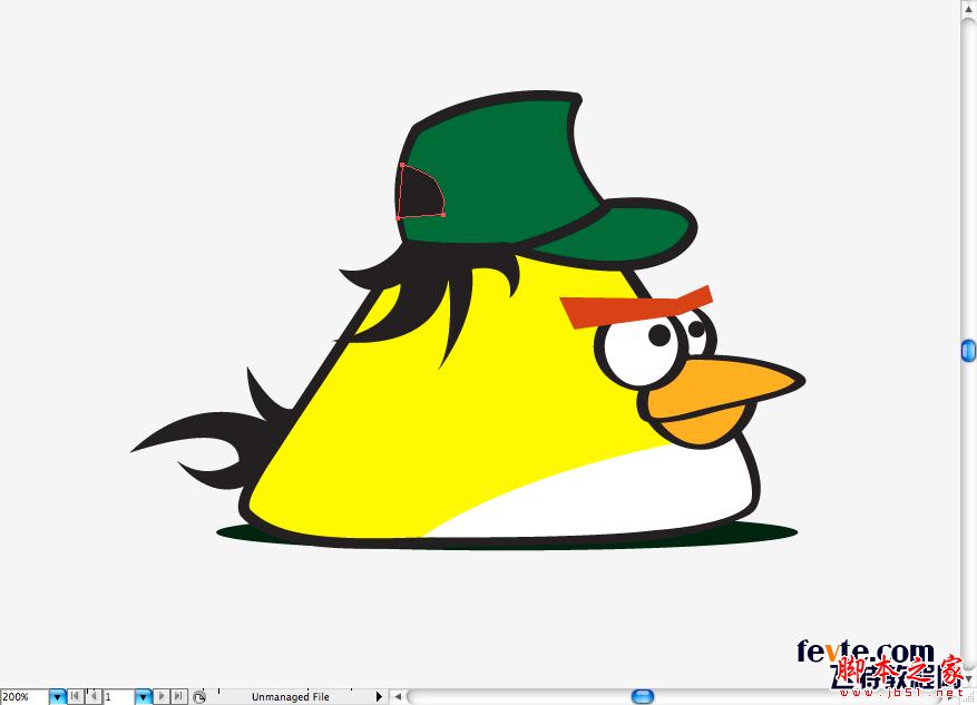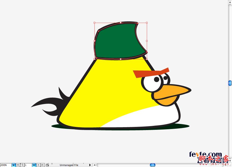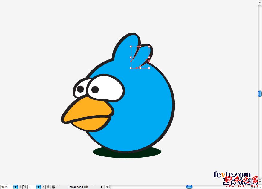 让我们给这只鸟画一个帽子,首先要使用钢笔工具(P)制作大体形状。