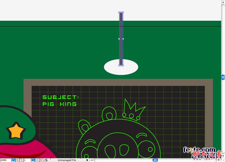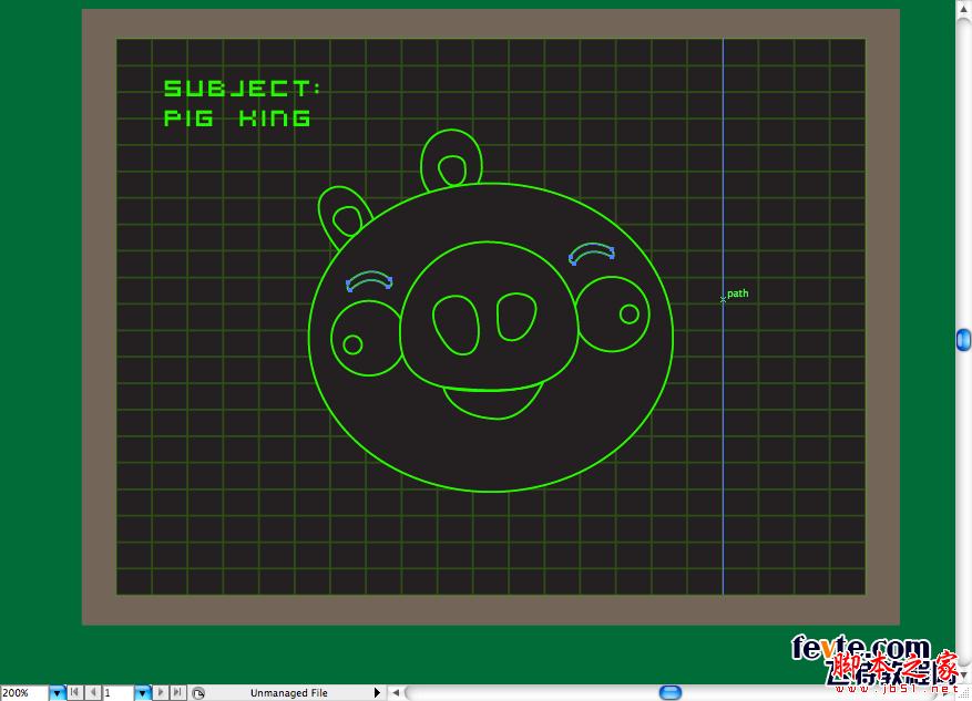 我在黑板上画了一幅猪王的图,只是有轮廓线,这像是经典的战争操作面板。所以,我首先使用椭圆工具(L)画了个椭圆.