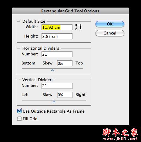 选择矩形网格工具(工具需要长按直线工具弹出菜单再选择),在画布上点击一次设置的参数,如下图: