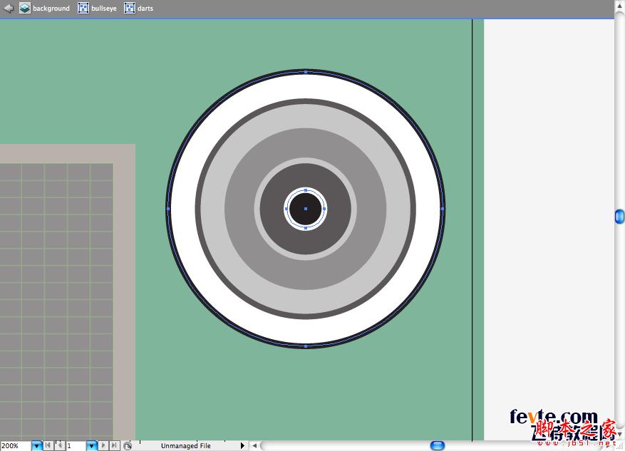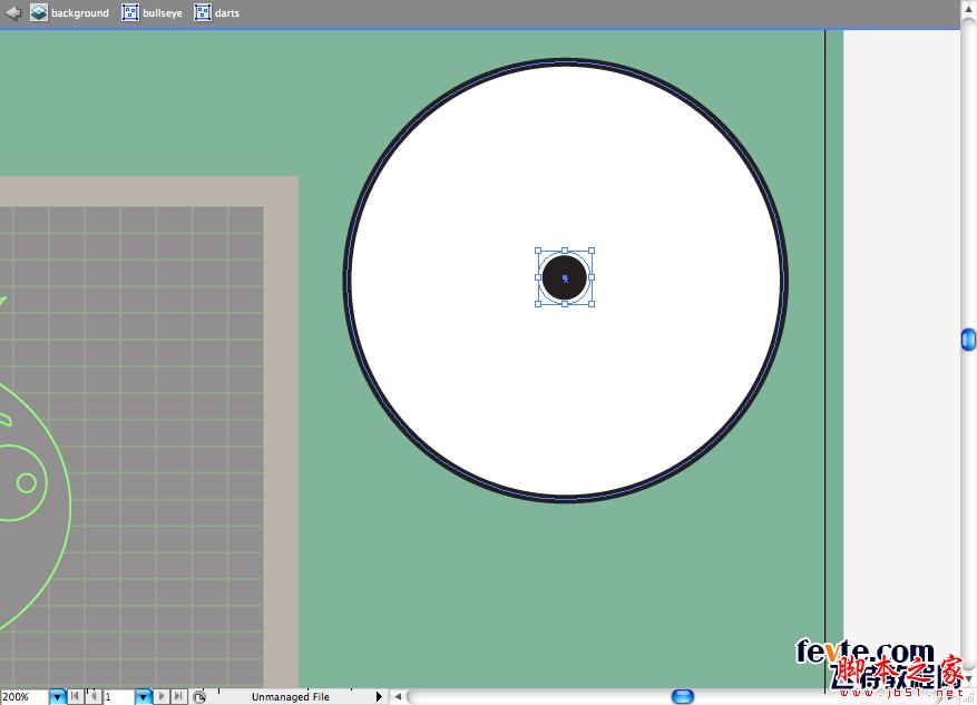 我还想创建一个经典的飞镖盘。首先使用椭圆工具制作两个圆形,一个放在另外一个的里面,如下图所示。一个是黑色填充,白色描边,另外一个使用相反的组合方式。