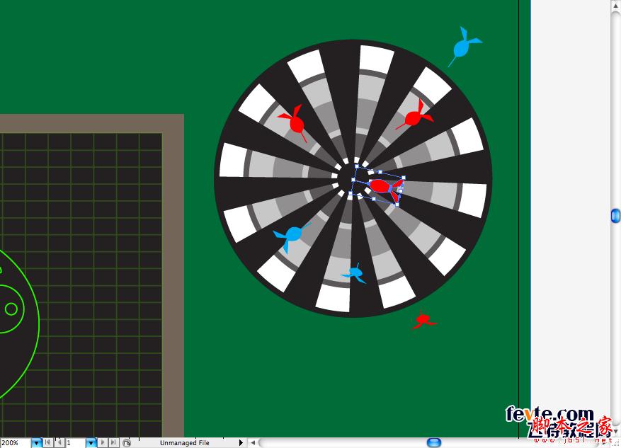 V)+alt复制它,之后调整大小围着飞镖板摆放。变换一下颜色,省得看着让人不爽。