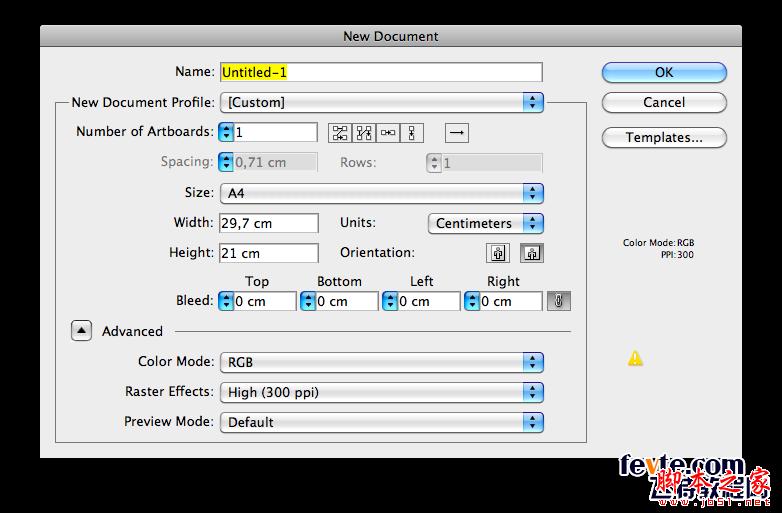 好吧,开始宽衣,打开AdobeIllustrator建个A4的画布(29,7 x 21 cm),