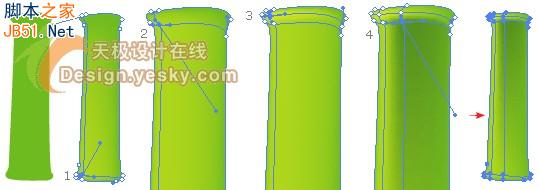 重复上述操作直到得到5到6节竹子,如图2中最右图所示,得到一根长长的竹子主干。design.yesky.com©天极软件频道设计在线原创©2001324542