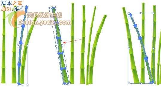 使用Alt键拖放的方法再复制出更多的竹子,复制的时候有意识地选用不同版本的竹子,并改变复制得到的竹子的大小或者对它们进行一些其它的变形操作,以避免看上去有雷同的感觉,使竹子更加自然,如图5所示。