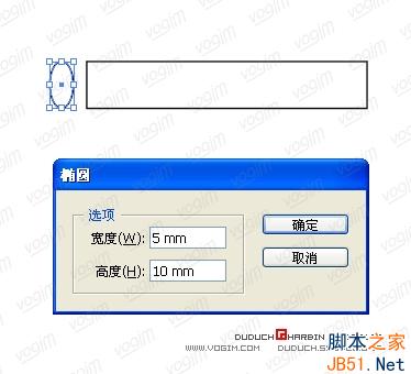 3.在工具箱里选择“椭圆工具”,在画布上单击,在“椭圆”对话框上设置宽度5mm、高10mm。