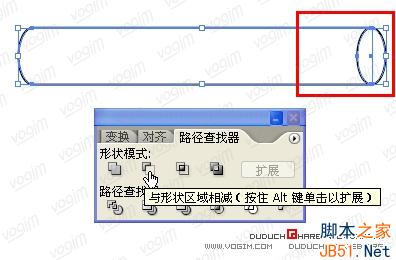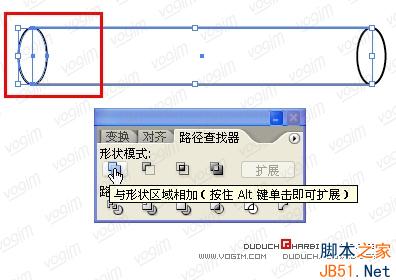 5.选择左侧椭圆和矩形,按Alt键点击“路径查找器”调板上的“与形状区域相加”。