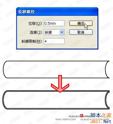 7.选择该图形,然后打开菜单“对象”—“路径”—“偏移路径”,在“位移路径”调板上选择位移0.5mm,其他设置不变。