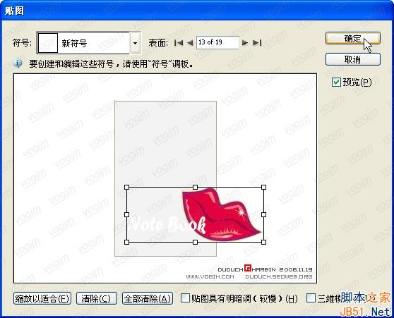 注意:3D变换中,只能贴定义为符号的图。符号可以是在AI里做的图形,也可以是位图,尽量控制在60mm×90mm以内,最好不要太复杂。
