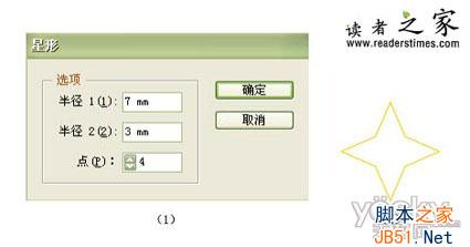 1、单击工具箱中的“星形工具”按钮,在页面中单击鼠标左键,弹出“星形”对话框,其参数设置如图(1)