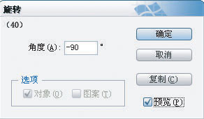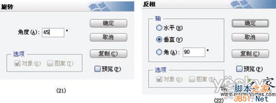 6、选取绘制完成的辅助图形,双击工具箱中的“旋转工具”按钮,弹出“旋转”对话框,其参数设置如图(21)所示。