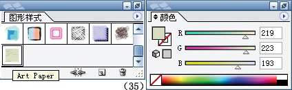 2、打开“图形样式”对话框,并选择合适的图形样式,将矩形的填充色也进行相应的调整,其选择的图形样式和调整的填充色如图(35)所示。