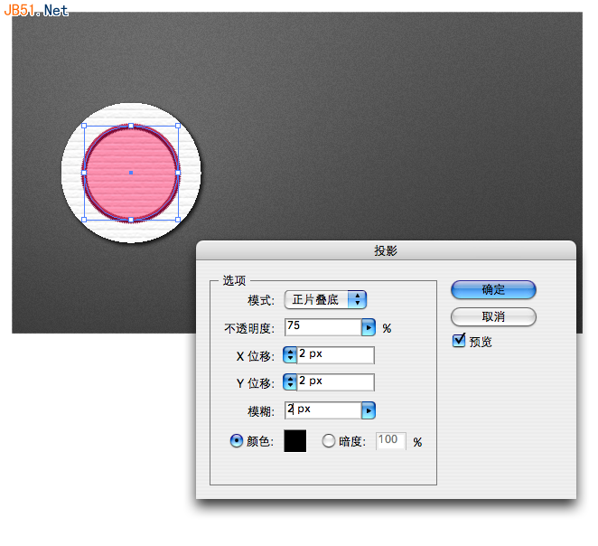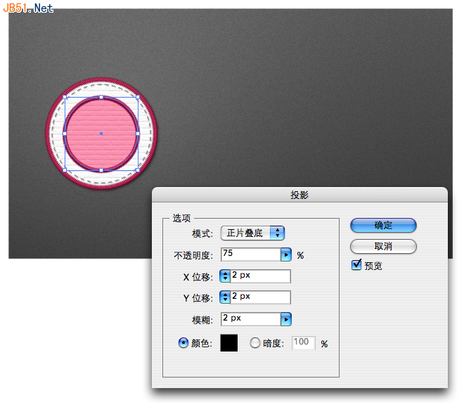 在亮灰色层上层新建1pt灰色虚线描边,此教程由软件自学网首发,对描边应用效果-风格化-投影。