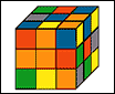 6 除了上图的三种颜色外,再使用“色板”功能板另外选择三种颜色;在“工具”功能板上选择“油漆桶工具”或键入K,使用“油漆桶工具”给各小四边形着色,得到如图所示的打乱的魔方。