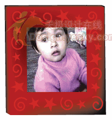 7.使用“螺旋线工具”和“星形工具”在照片四周画一些螺旋线和星形,无描边色,填充为淡红色,如图7所示。当使用这些工具绘图时,可以在绘制的同时按向上箭头键或向下箭头键增加或减少图形的段数或点数。