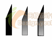9.使用“矩形工具”画一个黑色的小矩形,并使用“直接选择工具”改变其形状,如图9所示。用同样的方法绘制一个较小的图形,并以黑白渐变色填充,然后将其放置到黑色图形的上方,得到图9最右边所示的效果。