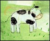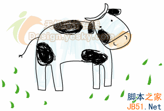5.在其它图层下方创建一个新的图层,如果你的电脑中保存有任何绿色纹理图片,请选择菜单命令“文件|置入”,然后浏览并找到它,将该图片置入到当前文档中,作为背景。或者可以画一个矩形,然后以绿色填充。这样我们就完成了如图5所示的奶牛图。