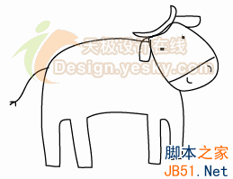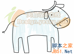 1.使用Illustrator工具箱中的“铅笔工具”画出奶牛的身体,如图1所示,将填充色设置为无,描边色设置为黑色,大小设置为2pt。