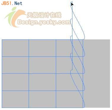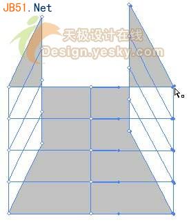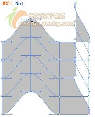 现在改用直接选择工具(键盘快捷键A)。选择最右边的一栏上的锚点,向左上拖动。如下图。