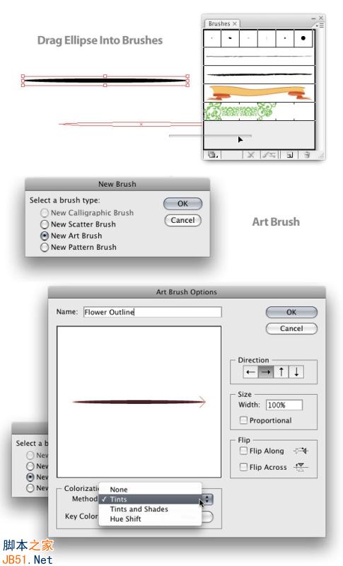 5 拖拽椭圆到笔刷面板.新建笔刷→新建艺术画笔(New Art Brush),