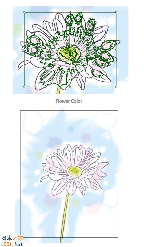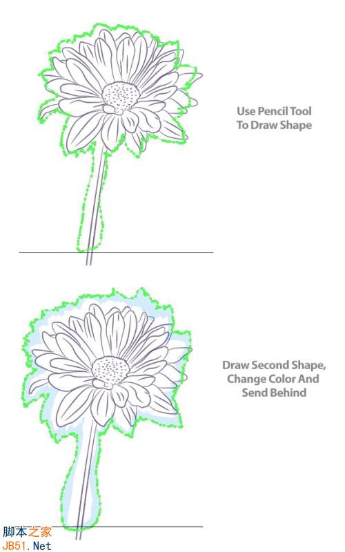 19 在花卉和花杆上应用上面的混合技术.就是画2个形状,大的放到后面,