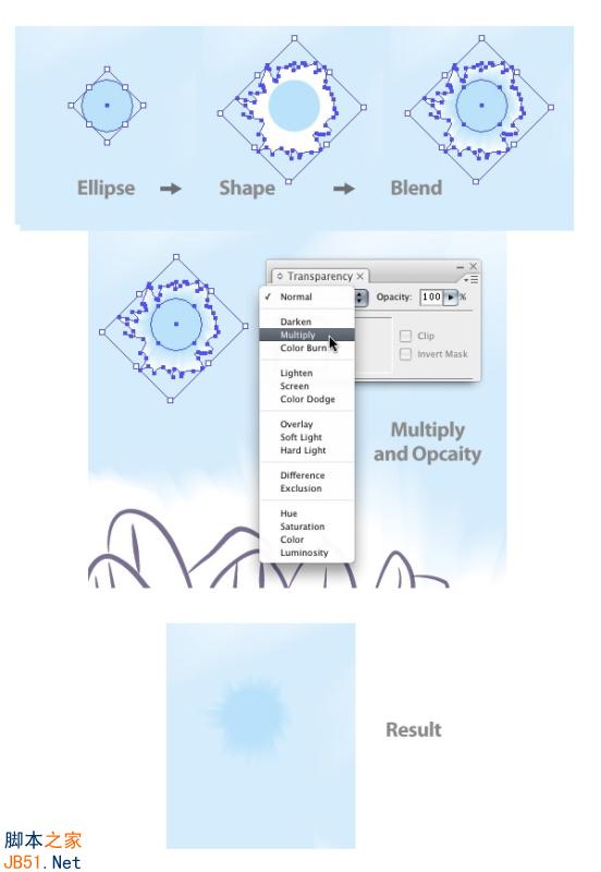 11 选中2个形状,做Object→Blend→Mask.之前对混合进行如下设定.