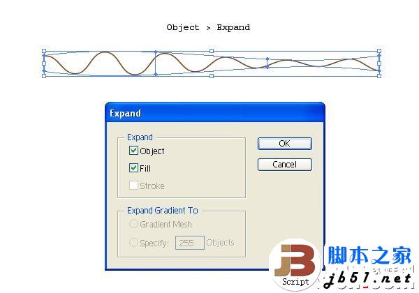 Step 4:选中波浪线,然后执行:对象>扩展 。参数设置如下。