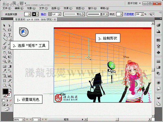 (1)使用“矩形”工具在网格内绘制矩形。