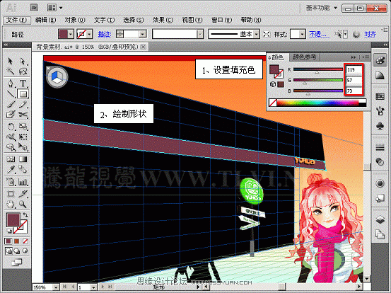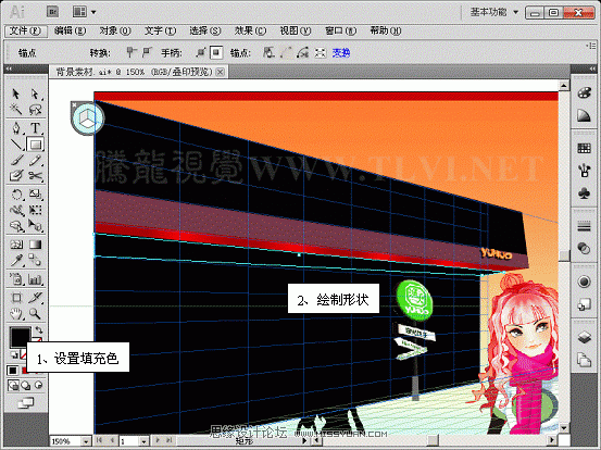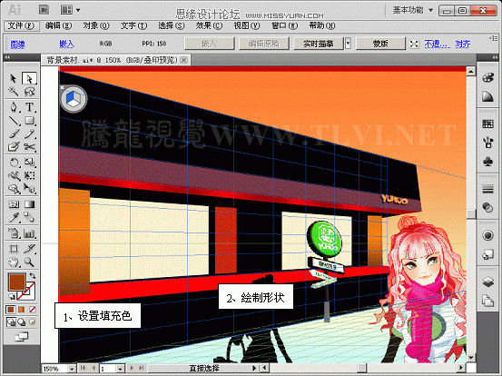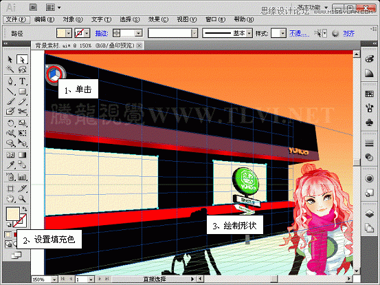 该教程精心为大家安排了通过透视网格绘制具有透视效果饭店的实例,在开始教程的学习之前,请先在网站下载配套的练习文件,以便跟随操作步骤学习。