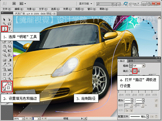 (1)打开素材“汽车广告.ai”文件。