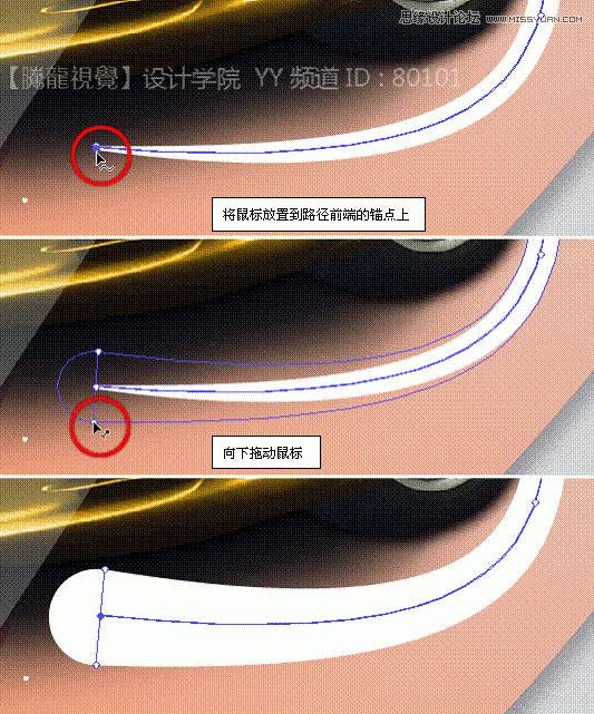 (2)使用“钢笔”工具,绘制圆头路径。