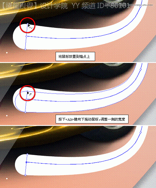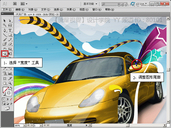 (3)使用“宽度”工具,调整路径描边的宽度。