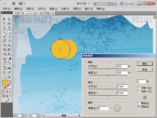 (11)选择这两个椭圆图形,执行“效果”→“扭曲和变换”命令,变换复制图形。