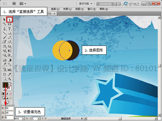 (10)执行“对象”→“扩展外观”命令,扩展并调整复制图形的颜色。