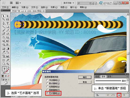 (13)将创建的黄色和黑色图形删除,使用“画笔”工具,绘制图形。