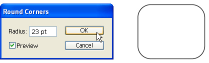 选中矩形,选择"效果>风格化>圆角,并给予一个矩形23pt圆度。