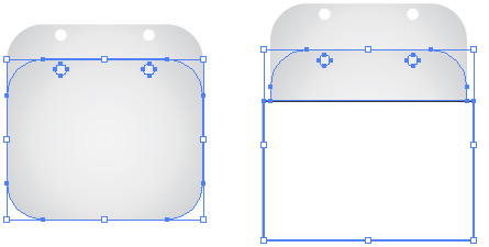 随着我们的图标基地创建,我们可以进行彩色层的上半部分的图标。使用复制和粘贴操作,重复图标基地。选择矩形工具,绘制一个矩形在您要删除的图标的基本对象,领域。选择矩形和图标基地,从探路者使用相同的工具修剪,修剪复制的对象,所以我们只有图标的顶端部分。