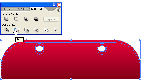 然后转到对象>展开外观,我们现在已经准备好为日历持有人的孔(待会儿将要加入的 )。的选择椭圆工具,按住Shift键以一个完美的圆。选择圆形,并按住Shift键选择矩形,以及 。然后选择"窗口">"探路者>修剪。为第二个日历孔,重复同样的动作 。图标基地现在已经准备好 。