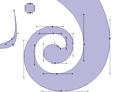 请注意所有的贝塞尔曲线的手柄(除了极少数特殊状况,我们稍后聊聊那些部分),它们大多都整齐地锁定在水平线上,或者垂直于平面。让我们探讨一下,为什么这样的设计很好用。