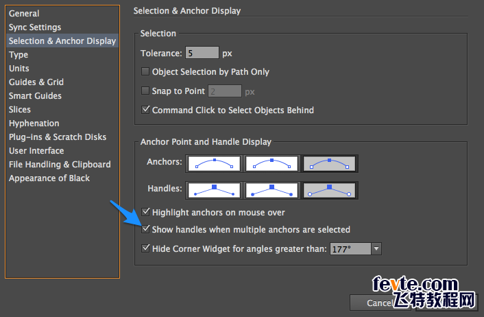 注意:要预览你自己的贝塞尔曲线——也就是钢笔轮廓,你可以打开AI的首选项进行设置( ⌘K)。这可以让你更方便控制手柄调节曲线的弧度。