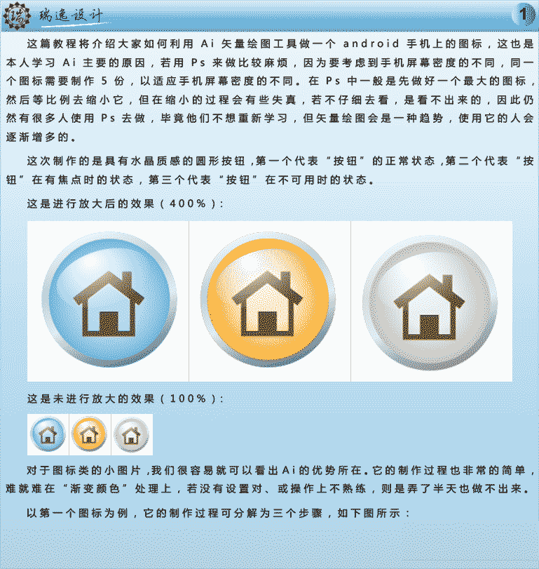 这篇教程是向大家介绍如何利用AI绘制android手机上的圆形图标,绘制出来的图标具有水晶志刚,非常漂亮,教程很实用,希望通过这篇教程可以提高Ai矢量绘图工具初学者们的水平!